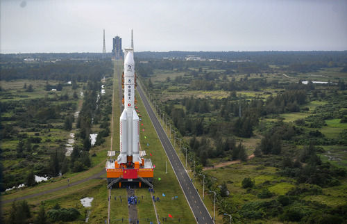 這是11月17日在中國(guó)文昌航天發(fā)射場(chǎng)拍攝的長(zhǎng)征五號(hào)遙五運(yùn)載火箭。新華社記者 郭程 攝