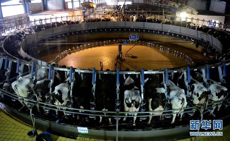 這是河南省駐馬店市正陽現(xiàn)代化牧場擠奶車間一角(10月27日攝)。