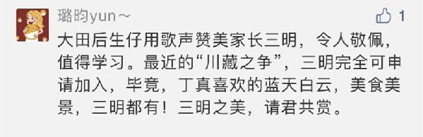 “我大福建真是處處美得沒話說!”“哈哈,我大沙縣又壓軸了?!薄疤寐犃?!內(nèi)心充滿自豪!”“開門見綠,抬頭見藍,這就是我的家鄉(xiāng)。”還有網(wǎng)友希望這首歌“能上春晚”。更有網(wǎng)友吟誦起三明,“好山好水好風情,數(shù)一數(shù)二數(shù)三明。紅軍長征出發(fā)地,客家文化傳世界 …… ”