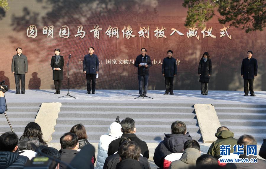 這是12月1日拍攝的“圓明園馬首銅像劃撥入藏儀式”現(xiàn)場(chǎng)。新華社記者 李賀 攝