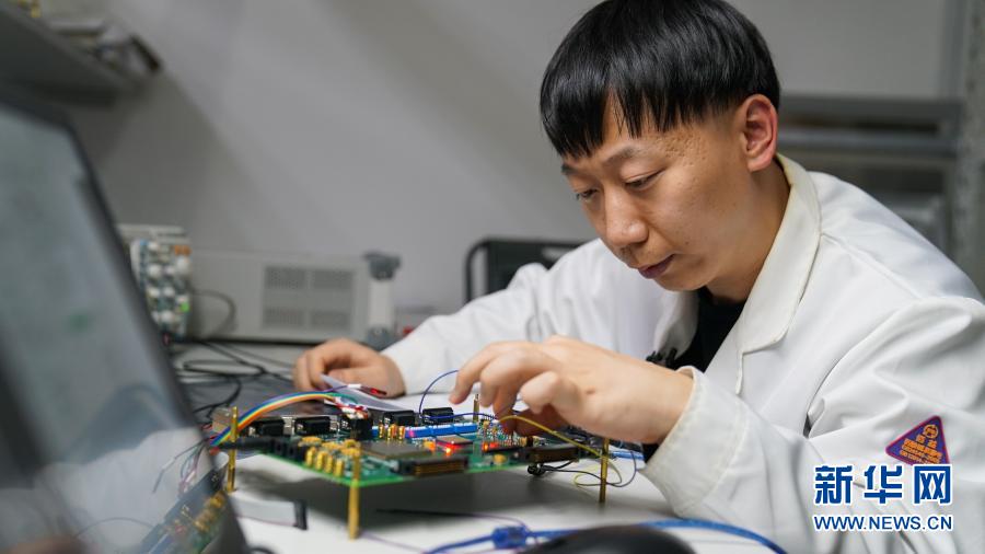在中科院長春光機(jī)所,科研人員隋延林調(diào)試相位計數(shù)字電路板(11月25日攝)。新華社發(fā)(王帆 攝)