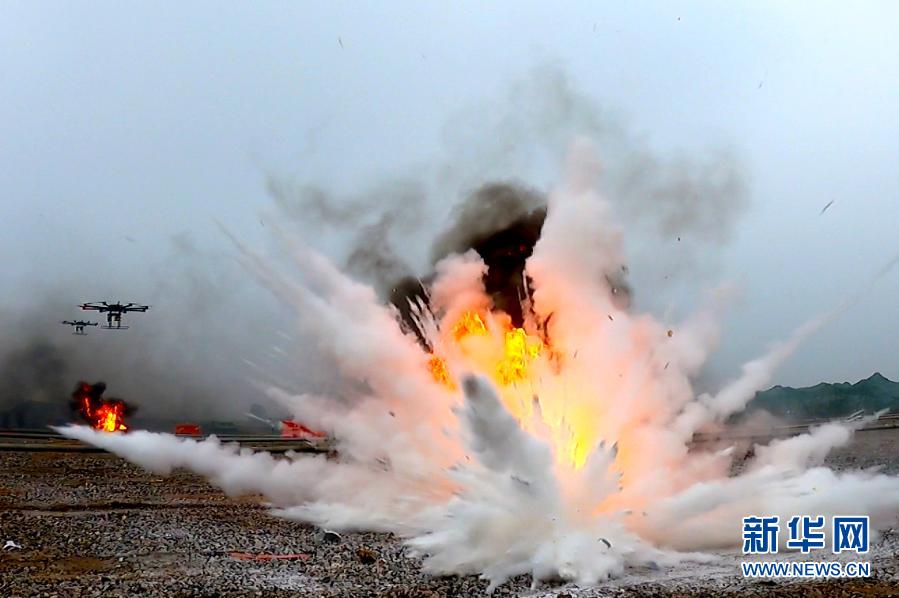 油料保障隊組織參賽隊員進行無人機滅火作業(yè)(12月1日視頻截圖)。新華社發(fā)(呂冀周 攝)