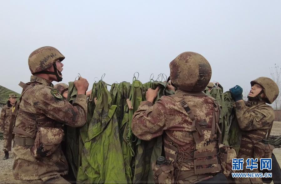 宿營保障隊參賽隊員在搭設野戰(zhàn)宿營帳篷(11月30日視頻截圖)。新華社發(fā)(呂冀周 攝)