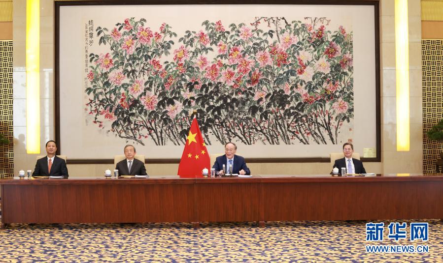 12月4日,國家副主席王岐山在北京以視頻方式會見清華大學經(jīng)濟管理學院顧問委員會海外委員和中方企業(yè)家委員。 新華社記者 丁林 攝