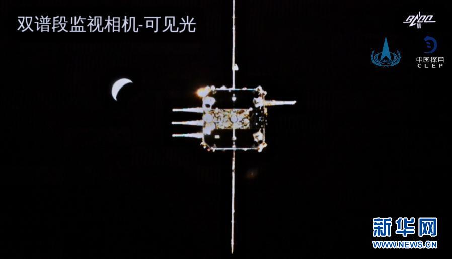 這是嫦娥五號(hào)上升器與軌道器返回器組合體完成交會(huì)對(duì)接畫(huà)面。新華社發(fā)(國(guó)家航天局供圖)