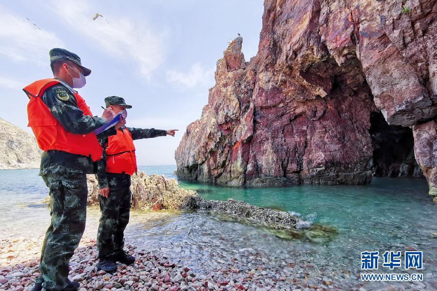 海警執(zhí)法員對轄區(qū)無居民海島進行檢查(5月20日攝)。新華社發(fā)(包新宇 攝)