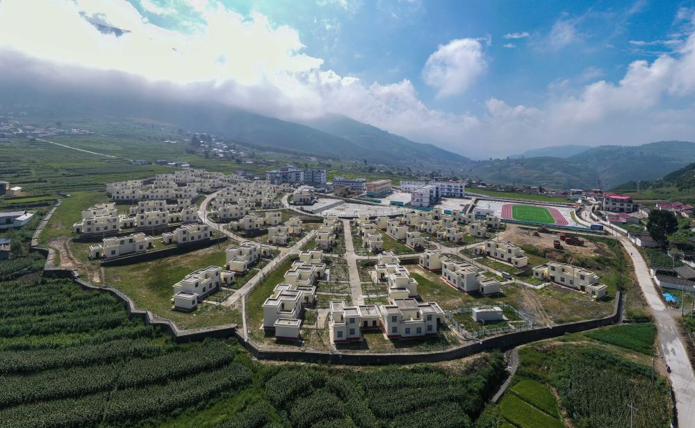 這是9月1日在四川省涼山彝族自治州喜德縣魯基鄉(xiāng)中壩村拍攝的易地扶貧搬遷安置點(無人機照片)。新華社記者 王曦 攝