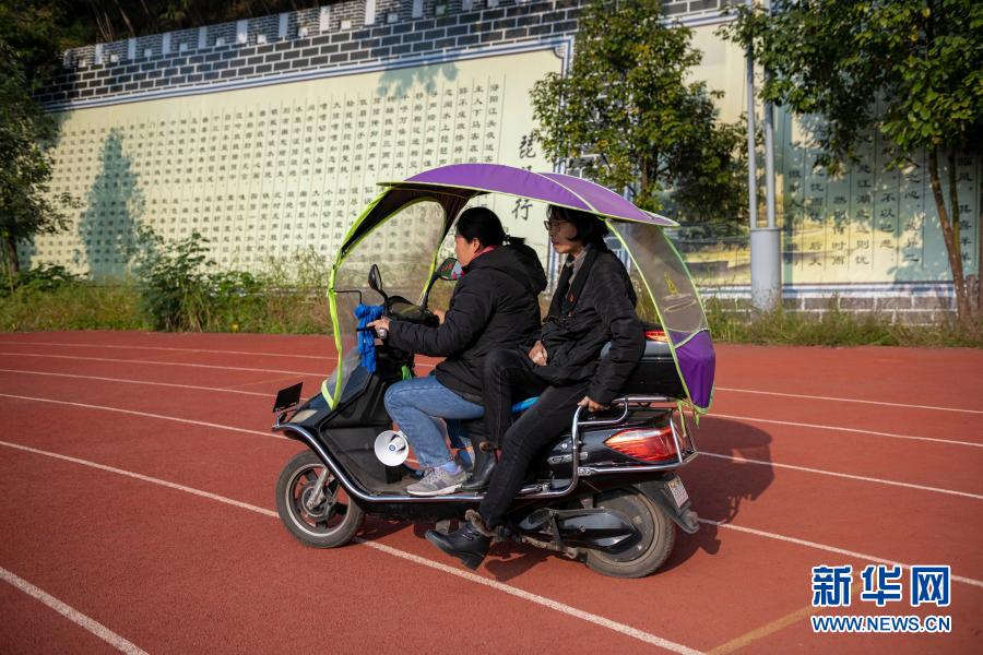 因為腿腳不便,張桂梅(后)坐車從田徑場回教學樓(11月30日攝)。新華社發(fā)(陳欣波 攝)
