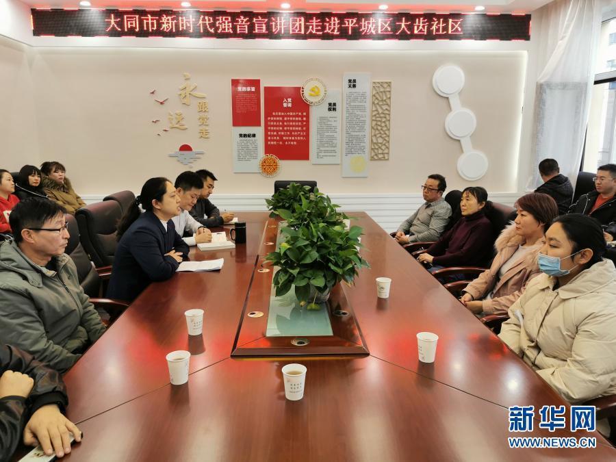 12月10日,大同市新時(shí)代強(qiáng)音宣講團(tuán)成員賈萬(wàn)新在大同市大齒社區(qū)宣講。新華社記者 王菲菲 攝