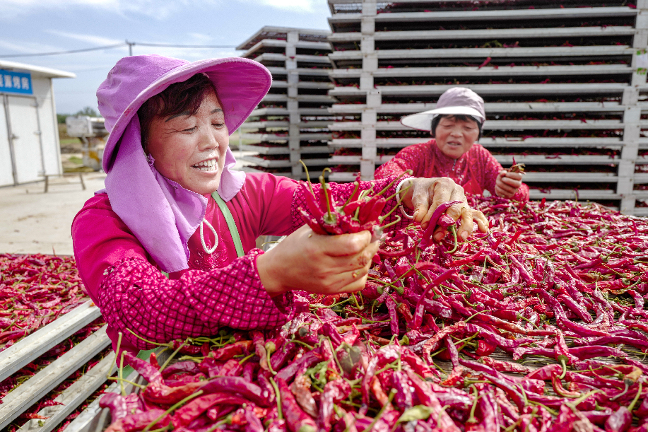 ????2018年拍攝于陜西興平桑鎮(zhèn)西橋村金鵬辣蒜專(zhuān)業(yè)合作社,農(nóng)民分揀辣椒,辣椒品質(zhì)優(yōu)良,農(nóng)民喜上眉梢。(組照2)張綺云 攝