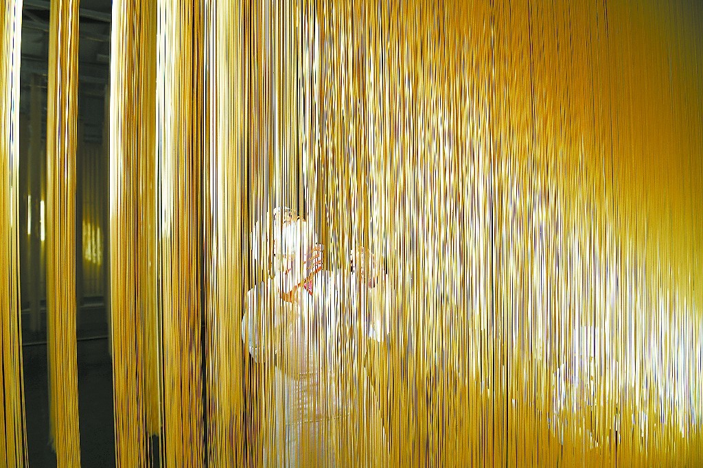 ????在扶貧車間里,村民田國(guó)林正在晾曬掛面。呂亞龍 攝
