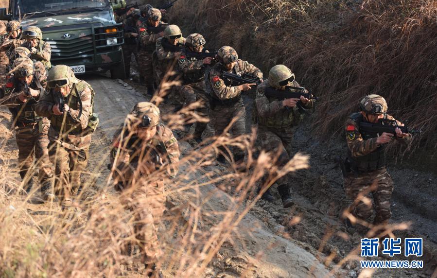 武警第一機(jī)動(dòng)總隊(duì)組織新兵開(kāi)展戰(zhàn)術(shù)訓(xùn)練(12月10日攝)。新華社發(fā)(鄭乾 攝)
