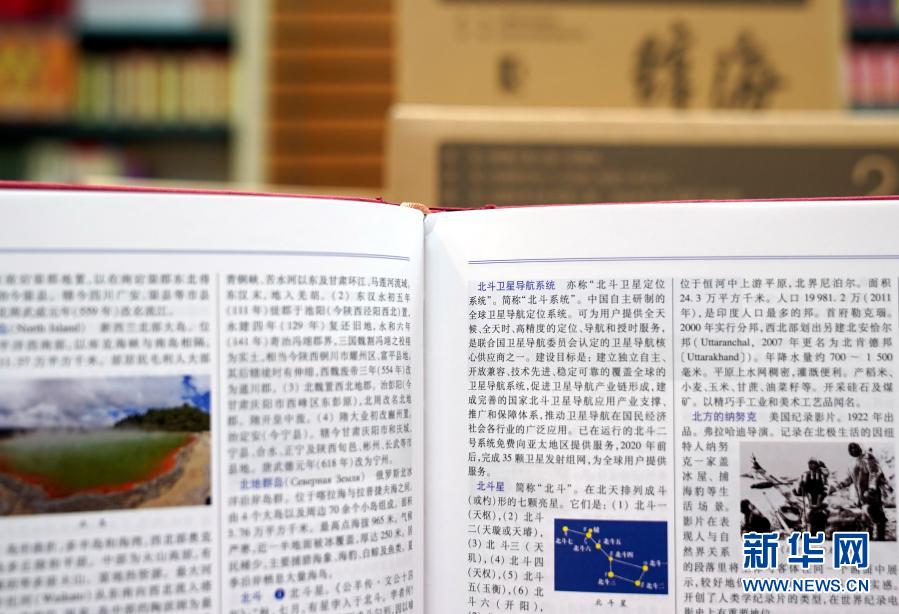 新版《辭?!分惺状问珍浀谋倍沸l(wèi)星導航系統(tǒng)等詞條(9月10日攝)。新華社記者 劉穎 攝