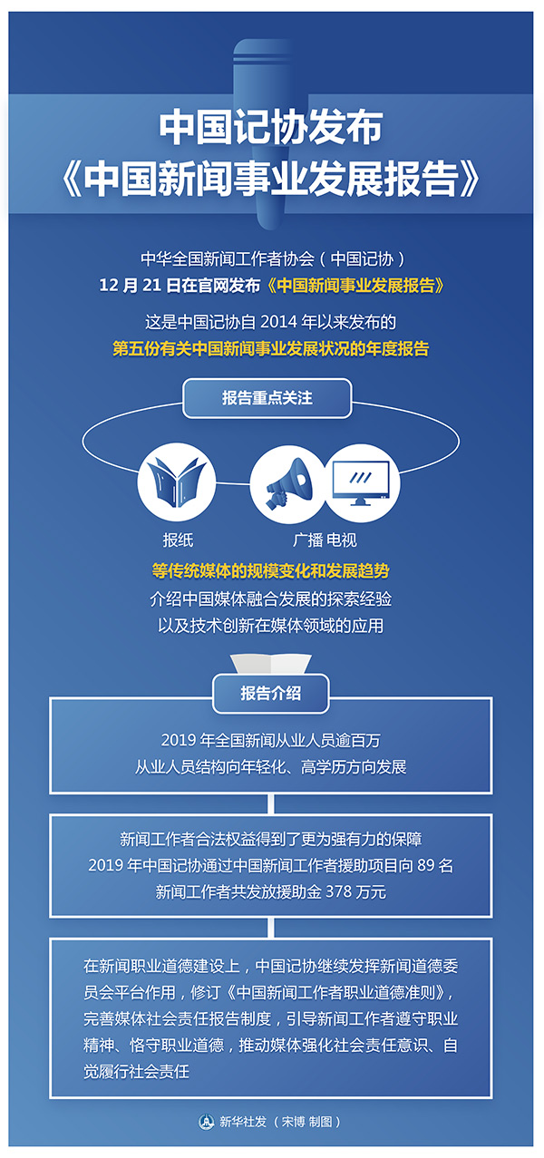 新華社北京12月21日電 中華全國新聞工作者協(xié)會(中國記協(xié))21日在官網(wǎng)發(fā)布《中國新聞事業(yè)發(fā)展報告》。這是中國記協(xié)自2014年以來發(fā)布的第五份有關中國新聞事業(yè)發(fā)展狀況的年度報告。