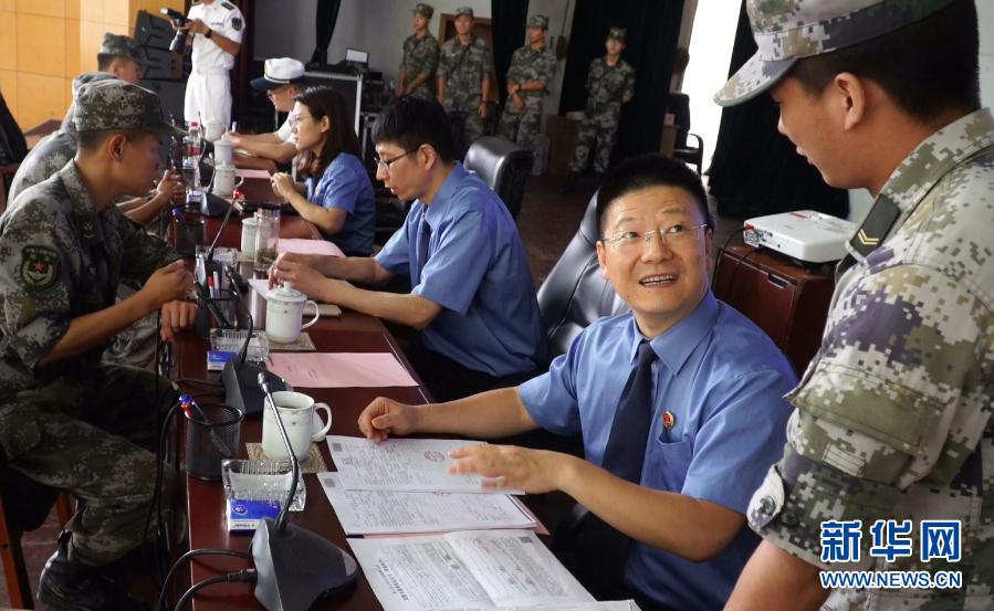 陸軍第72集團軍某旅開展軍地聯合送法下基層活動,官兵現場咨詢法律常識(9月16日攝)。新華社發(fā)(莊林毅 攝)
