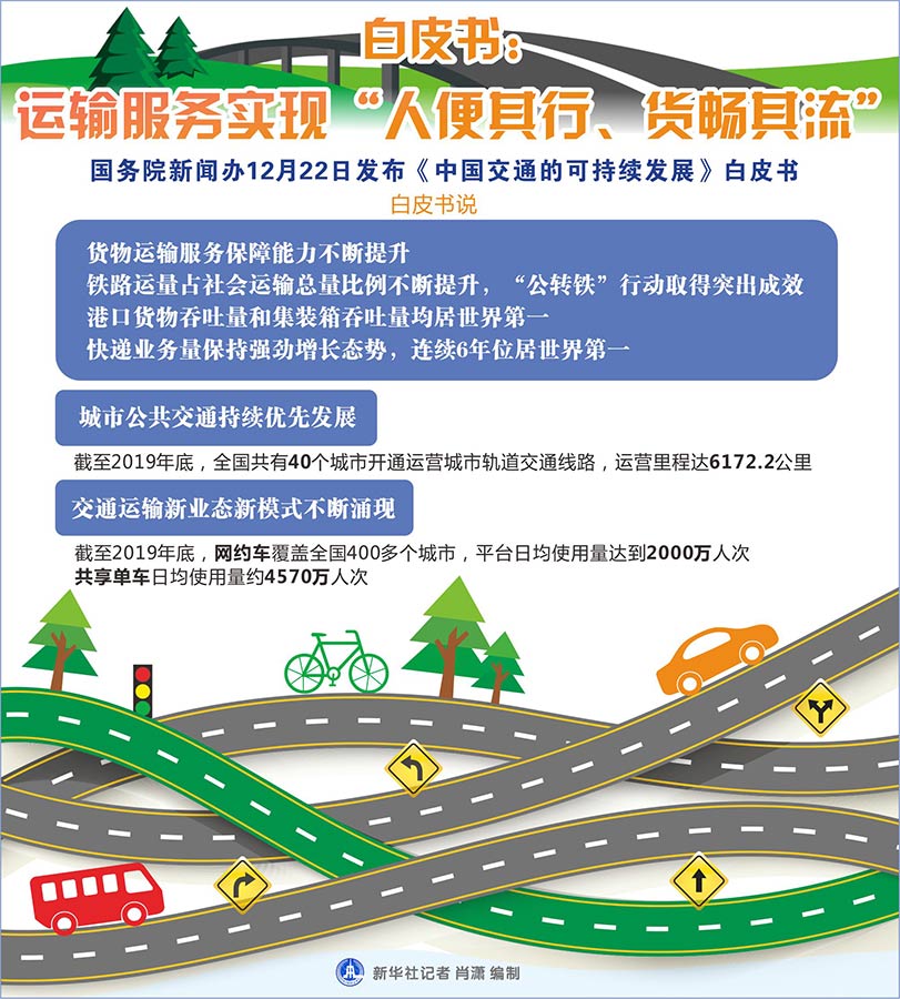 新華社北京12月22日電(記者魏玉坤、周圓)國務院新聞辦22日發(fā)布的《中國交通的可持續(xù)發(fā)展》白皮書介紹,運輸服務實現(xiàn)“人便其行、貨暢其流”,通達性和保障性顯著增強。交通運輸對國家經(jīng)濟社會發(fā)展的支撐顯著增強,促投資、促消費、穩(wěn)增長作用明顯。