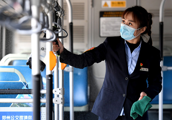 疫情期間,對車輛進(jìn)行消毒成了她每天必須完成的新任務(wù)。扶手、垃圾箱、空調(diào)出風(fēng)口、司機駕駛座,每一個位置黃菲都清理得很認(rèn)真。