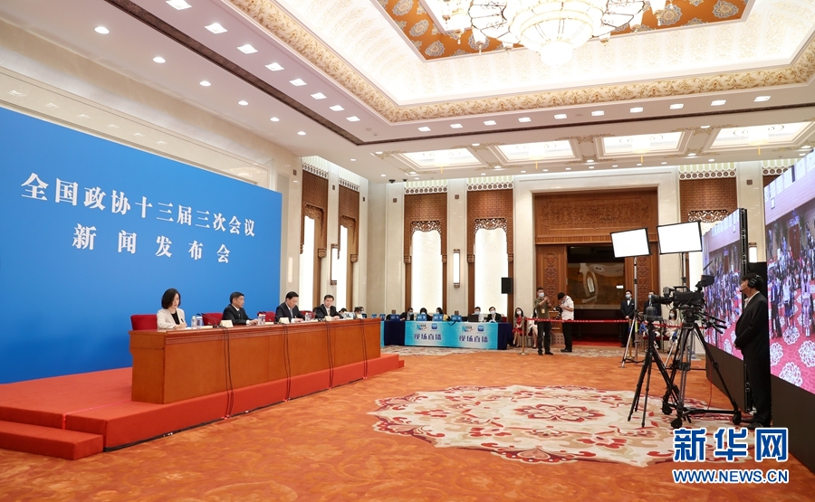 5月20日,全國(guó)政協(xié)十三屆三次會(huì)議新聞發(fā)布會(huì)在北京舉行,大會(huì)新聞發(fā)言人郭衛(wèi)民介紹本次大會(huì)有關(guān)情況并回答中外記者提問。圖為人民大會(huì)堂新聞發(fā)布廳現(xiàn)場(chǎng)。新華網(wǎng) 王翰林 攝