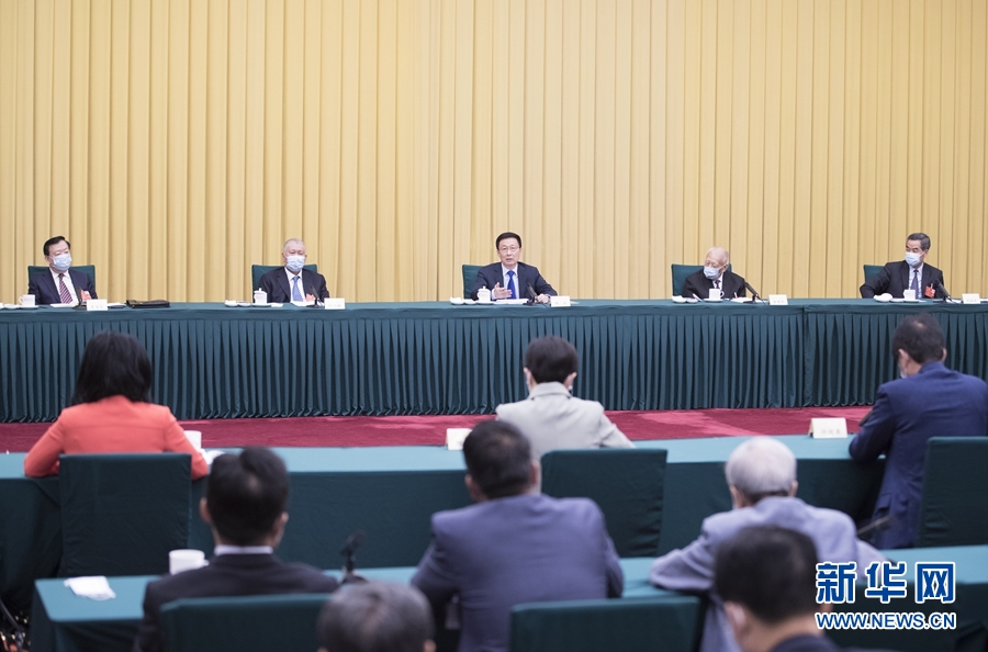 5月23日,中共中央政治局常委、國(guó)務(wù)院副總理韓正看望出席全國(guó)政協(xié)十三屆三次會(huì)議的港澳地區(qū)全國(guó)政協(xié)委員并參加討論。 新華社記者 王曄 攝