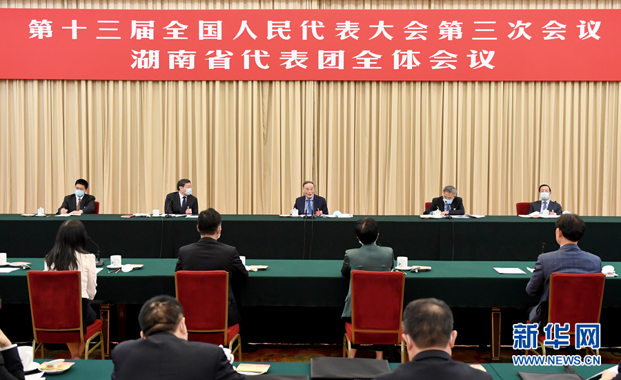 5月24日,國家副主席王岐山參加十三屆全國人大三次會議湖南代表團(tuán)的審議。 新華社記者 岳月偉 攝