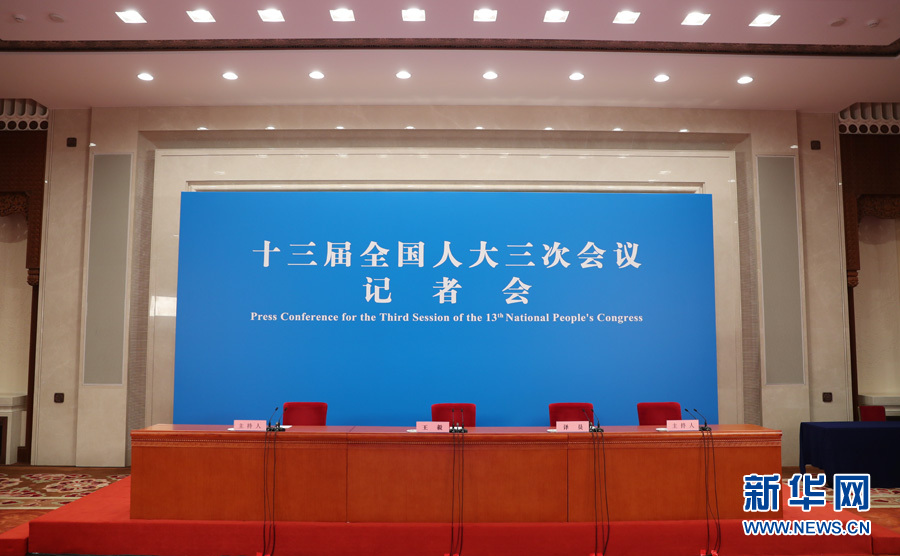 十三屆全國(guó)人大三次會(huì)議于5月24日(星期日)下午3時(shí)在人民大會(huì)堂新聞發(fā)布廳舉行記者會(huì),邀請(qǐng)國(guó)務(wù)委員兼外交部長(zhǎng)王毅就“中國(guó)外交政策和對(duì)外關(guān)系”相關(guān)問(wèn)題回答中外記者提問(wèn)。為有效防控疫情,共同維護(hù)公共衛(wèi)生與健康,記者會(huì)將采用網(wǎng)絡(luò)視頻形式進(jìn)行。新華網(wǎng)現(xiàn)場(chǎng)直播。圖為記者會(huì)現(xiàn)場(chǎng)。新華網(wǎng) 翟子赫 攝