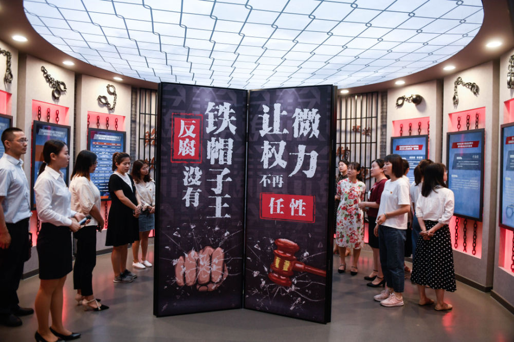 公職人員在浙江寧波長山清風館的“典案醒廉”展廳參觀。(新華社記者黃宗治 攝)