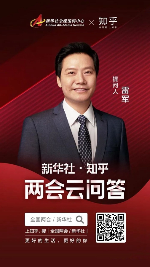 今年全國(guó)兩會(huì)期間,新華社聯(lián)合知乎發(fā)起《兩會(huì)云問(wèn)答》,鐘南山、雷軍、姚明、張文宏、雷佳、郎朗首次跨界“云”問(wèn)答。企業(yè)家雷軍的問(wèn)題是:未來(lái)幾年,科技領(lǐng)域會(huì)有哪些重大突破?將為哪些行業(yè)帶來(lái)新機(jī)遇?