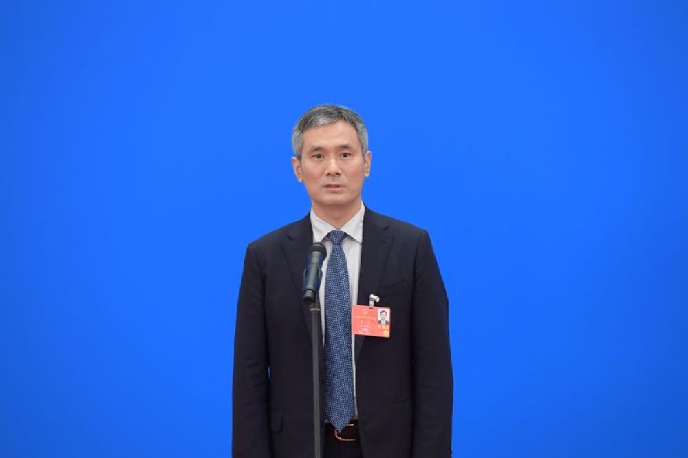 5月22日,第十三屆全國人民代表大會(huì)第三次會(huì)議舉行首場(chǎng)“代表通道”采訪活動(dòng)。這是全國人大代表羅杰接受采訪。新華社記者 李賀 攝