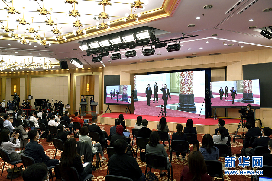 5月28日,國(guó)務(wù)院總理李克強(qiáng)在北京人民大會(huì)堂出席記者會(huì)并回答中外記者提問(wèn)。這是記者在梅地亞中心多功能廳采訪。 新華社記者 金良快 攝