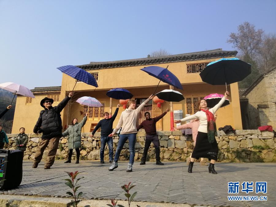 這是2020年12月19日,植國明、肖恩、瑞貝卡·尼什、烏俊杰與村民們一起練習舞蹈,迎接新年。新華社記者 劉方強攝