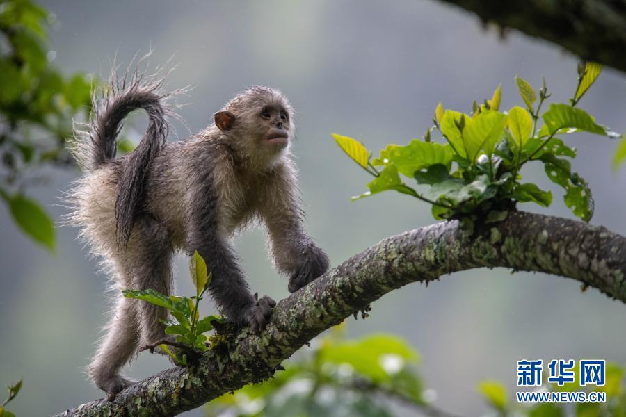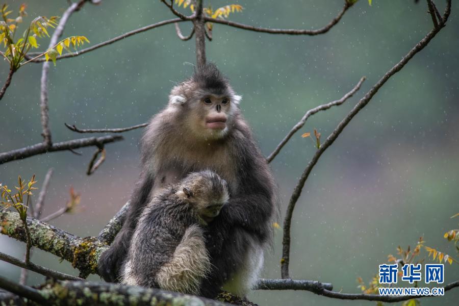 這是云南迪慶藏族自治州香格里拉滇金絲猴國家公園里的滇金絲猴(2020年5月23日攝)。新華社記者 胡超 攝