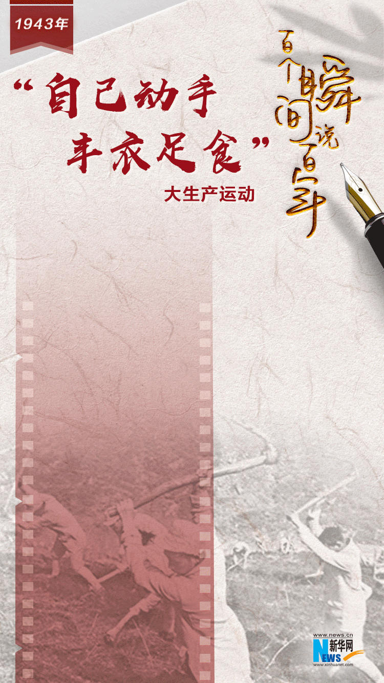 1939年2月,當(dāng)困難剛剛露頭的時(shí)候,毛澤東就發(fā)出了“自己動(dòng)手”的號(hào)召。1941年,黨中央再次強(qiáng)調(diào)必須走生產(chǎn)自救的道路。同年春,八路軍第三五九旅開進(jìn)南泥灣實(shí)行軍墾屯田。戰(zhàn)士們用歌聲喚醒沉睡的土地,用汗水澆出萬頃良田,使昔日荒涼的南泥灣變成了“糧食堆滿倉,麥田翻金浪,豬牛羊肥壯”的“陜北的好江南”。到1944年,第三五九旅除吃用全部自給外,達(dá)到了“耕一余一”(即耕種一年莊稼,除消耗外,可剩余一年吃的糧食),成為全軍大生產(chǎn)運(yùn)動(dòng)的模范。一曲動(dòng)人的《南泥灣》流傳至今,久唱不衰。