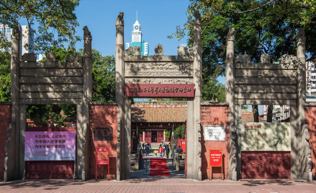 高樓林立間,坐落著一片典雅莊重的古建筑群,紅墻黃瓦、殿檐斗拱、泮池拱橋……這便是位于廣州越秀老城區(qū)的毛澤東同志主辦農(nóng)民運(yùn)動(dòng)講習(xí)所舊址紀(jì)念館。
