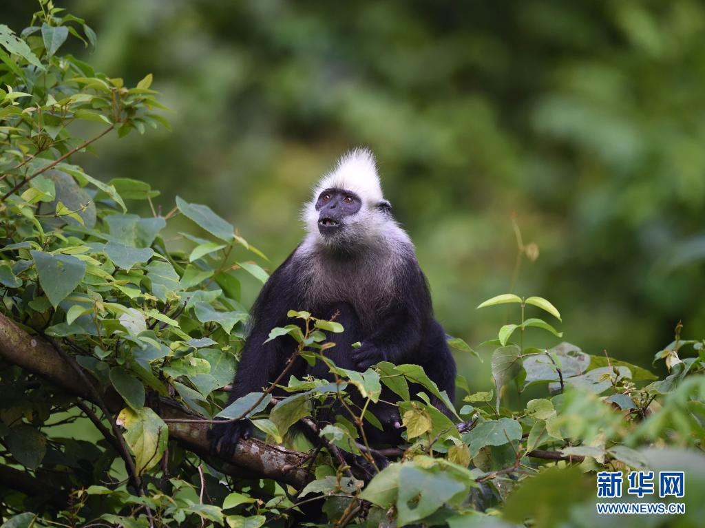 廣西崇左白頭葉猴國(guó)家級(jí)自然保護(hù)區(qū)板利片區(qū)一處山坳里,在族群覓食的時(shí)候,猴王警惕地觀察周圍環(huán)境(2016年8月6日攝)。新華社記者 周華 攝