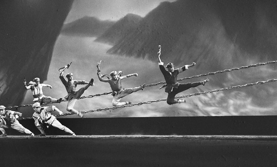 1964年10月,大型音樂(lè)舞蹈史詩(shī)《東方紅》在北京人民大會(huì)堂首演。這是以紅軍長(zhǎng)征為主題的《東方紅》第三場(chǎng)《萬(wàn)水千山》。新華社圖片