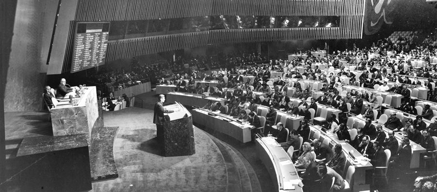 1971年9月,第二十六屆聯(lián)合國大會召開。從10月18日開始,聯(lián)合國大會就恢復中華人民共和國在聯(lián)合國的代表權問題進行了一周的激烈辯論。10月25日,第二十六屆聯(lián)合國大會表決剛一結束,紐約聯(lián)合國會議大廳里立刻一片沸騰,雷鳴般的掌聲和歡呼聲一浪高過一浪,此起彼伏,經(jīng)久不息。新聞媒介評論道:“中國是在自己不在場的情況下,受到聯(lián)大三分之二以上國家的祝福,使聯(lián)合國發(fā)生根本變化?!?/p>