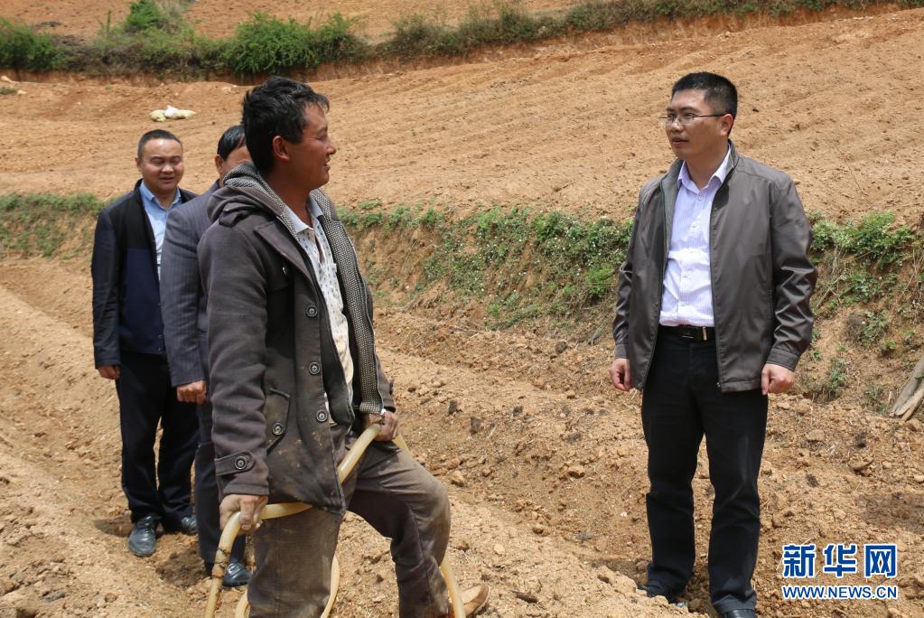 聶金輝(左)在劍川縣彌沙鄉(xiāng)調(diào)研時了解當(dāng)?shù)禺a(chǎn)業(yè)發(fā)展情況(2016年4月28日攝)。新華社發(fā)(劍川縣融媒體中心供圖)