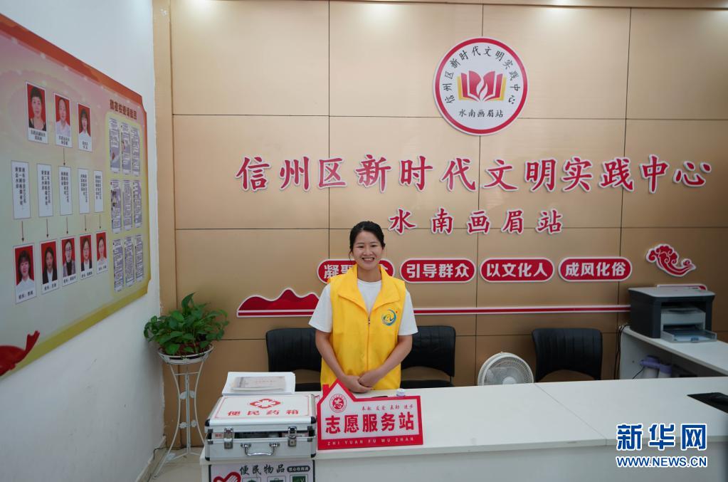 江西省上饒市信州區(qū)新時代文明實踐中心水南畫眉站的工作人員在值班(7月22日攝)。新華社記者 邢廣利 攝