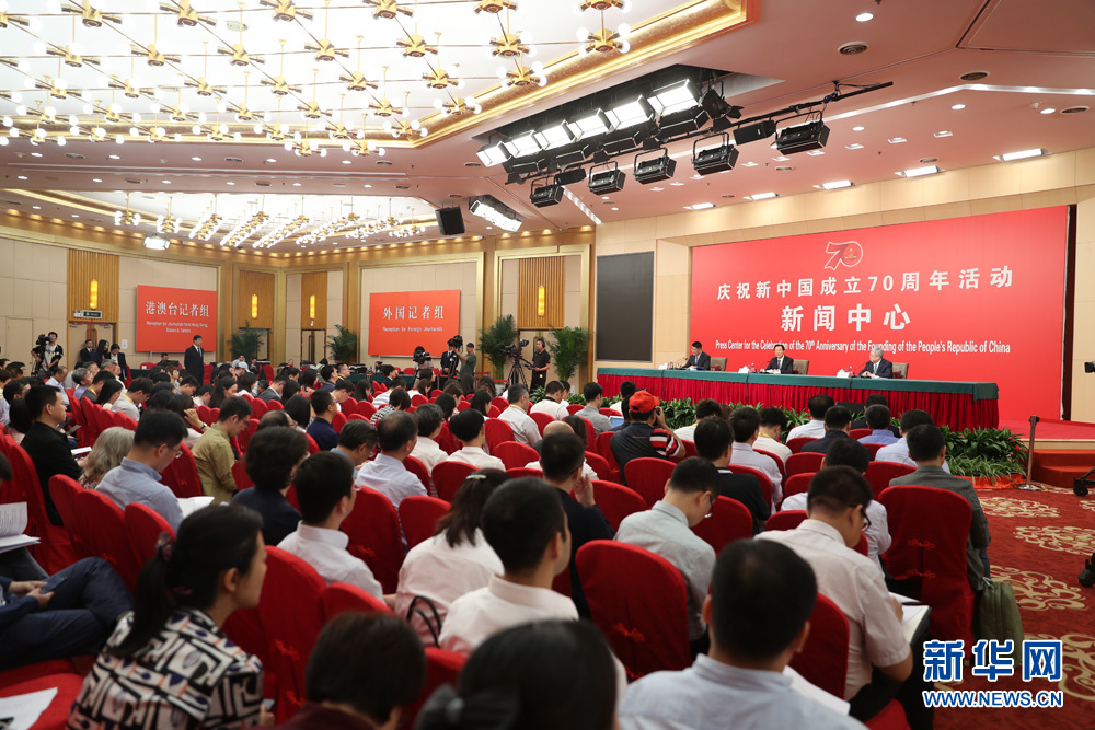 9月27日,慶祝中華人民共和國(guó)成立70周年活動(dòng)新聞中心在梅地亞中心二層新聞發(fā)布廳舉辦第三場(chǎng)新聞發(fā)布會(huì),中央農(nóng)村工作領(lǐng)導(dǎo)小組辦公室主任、農(nóng)業(yè)農(nóng)村部部長(zhǎng)韓長(zhǎng)賦,國(guó)務(wù)院扶貧開發(fā)領(lǐng)導(dǎo)小組辦公室主任劉永富介紹全面建成小康社會(huì),扎實(shí)推進(jìn)脫貧攻堅(jiān)和鄉(xiāng)村振興,并回答記者提問。圖為發(fā)布會(huì)現(xiàn)場(chǎng)。新華網(wǎng) 陳杰 攝