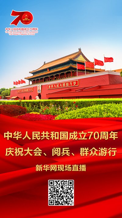 新華社北京9月29日電 10月1日上午,慶祝中華人民共和國(guó)成立70周年大會(huì)將在北京天安門廣場(chǎng)隆重舉行。屆時(shí),中共中央總書記、國(guó)家主席、中央軍委主席習(xí)近平將發(fā)表重要講話,隨后舉行盛大的閱兵式和群眾游行。廣播電臺(tái)、電視臺(tái)、新聞網(wǎng)站將現(xiàn)場(chǎng)直播國(guó)慶慶祝大會(huì)、閱兵式和群眾游行。