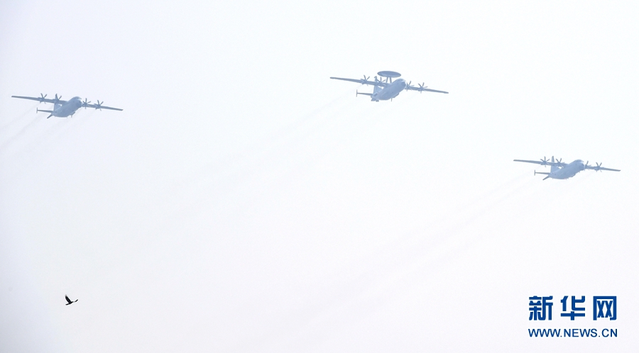 新華社北京10月1日電(黃書波、周正新)空警-500H預(yù)警機、空警-200H預(yù)警機、運-8反潛巡邏機、運-8技術(shù)偵察機組成的海上巡邏機梯隊,1日上午飛過天安門廣場上空,作為海軍新型信息作戰(zhàn)力量的4型特種機首次集體亮相。