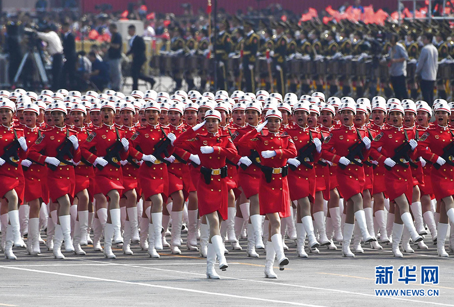 10月1日上午,慶祝中華人民共和國成立70周年大會在北京天安門廣場隆重舉行。這是民兵方隊。 新華社記者張晨霖攝