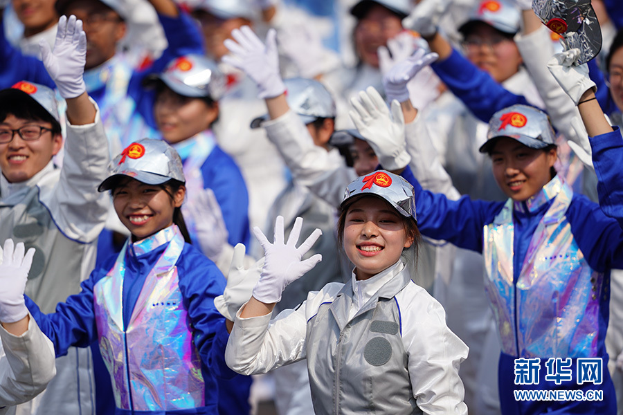 “在偉大復(fù)興部分,展現(xiàn)了走進新時代的中國人的氣質(zhì)和風貌。國家對科技發(fā)展越來越重視,有一個方陣就體現(xiàn)了技術(shù)進步下的服飾變化,有航天服、無塵實驗室人員服裝等樣式,材料選擇有科技感的面料。”鄒游說。