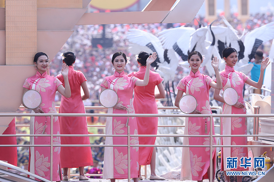 “此次群眾游行方陣里中國文化元素的服裝集中亮相,展示了國人越來越自信的風貌與氣質(zhì)。”北京服裝學(xué)院服裝藝術(shù)與工程學(xué)院教授鄒游說。