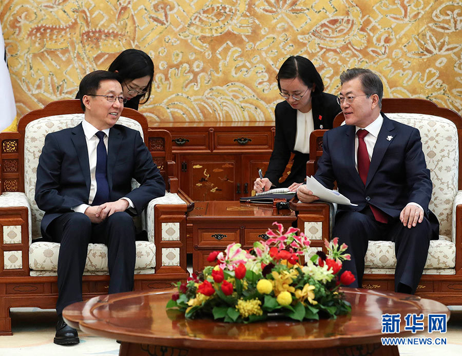 韓正表示,近期朝鮮半島形勢發(fā)生積極變化,韓朝雙方以平昌冬奧會為契機重啟對話,開展合作,南北關(guān)系改善取得進展。中方支持韓朝雙方和解合作,希望有關(guān)各方相向而行,為進一步緩和半島形勢、推動半島問題政治解決進程共同作出努力。