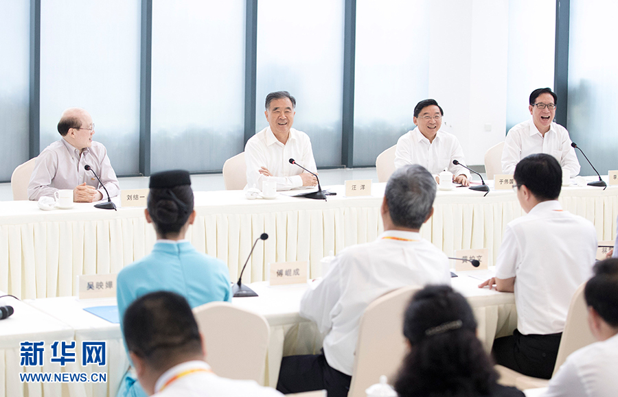 6月6日至7日,中共中央政治局常委、全國政協(xié)主席汪洋在廈門出席第十屆海峽論壇期間,就兩岸經(jīng)濟(jì)文化交流合作情況進(jìn)行調(diào)研。這是6月6日,汪洋與在閩工作的臺灣同胞代表座談。新華社記者 王曄 攝