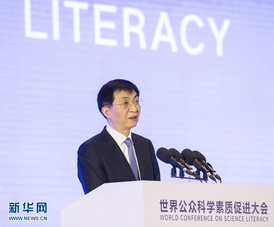 王滬寧表示,習近平主席專門發(fā)來賀信,充分肯定本次大會的重要意義,高度評價增強公眾科學素質對構建人類命運共同體的重要作用,體現了對增強公眾科學素質的高度重視。習近平主席歷來高度重視科技創(chuàng)新和科技事業(yè),強調科技創(chuàng)新有賴公眾科學素質的提升,要把科學普及放在與科技創(chuàng)新同等重要的位置,普及科學知識、弘揚科學精神、傳播科學思想、倡導科學方法。中國高度重視科學普及,頒布了科學技術普及法,為中國人民提供了便捷的科普服務。
