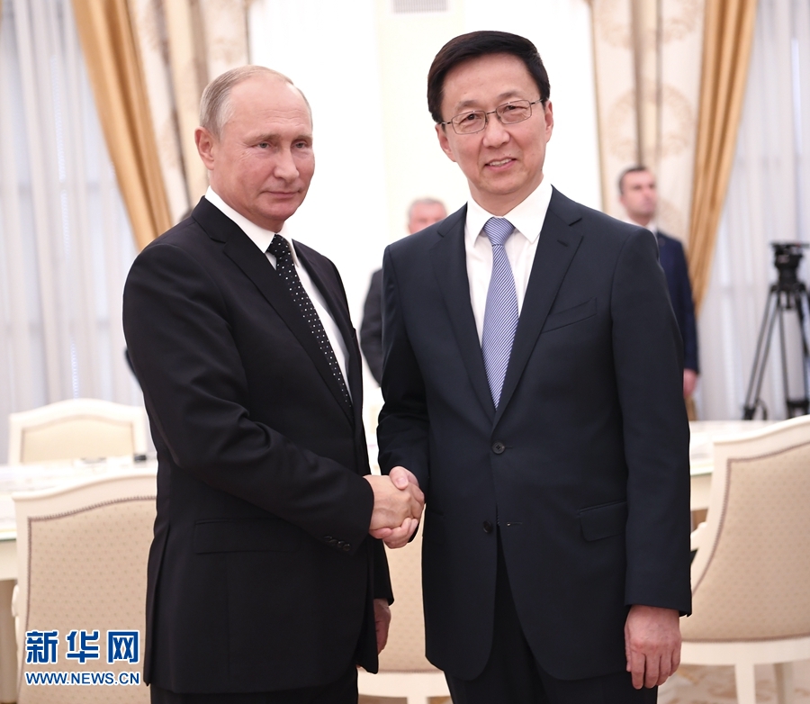 在會(huì)見普京時(shí),韓正轉(zhuǎn)達(dá)了習(xí)近平主席的親切問候,普京表示感謝并請(qǐng)韓正轉(zhuǎn)達(dá)對(duì)習(xí)近平主席的良好祝愿。