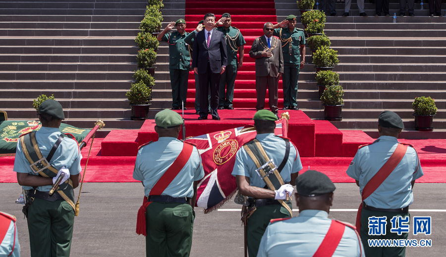 當(dāng)?shù)貢r(shí)間上午10時(shí)30分許,習(xí)近平乘車抵達(dá)議會大廈,受到達(dá)達(dá)埃熱情迎接。兩國領(lǐng)導(dǎo)人登上檢閱臺。軍樂隊(duì)奏中巴新兩國國歌?,F(xiàn)場鳴21響禮炮。習(xí)近平在達(dá)達(dá)埃陪同下檢閱儀仗隊(duì)。檢閱畢,習(xí)近平同巴新方主要官員握手,達(dá)達(dá)埃同中方陪同人員握手。兩國領(lǐng)導(dǎo)人共同前往議會大廈會見廳,巴布亞新幾內(nèi)亞議長波馬特等在大廈外迎接并陪同會見。