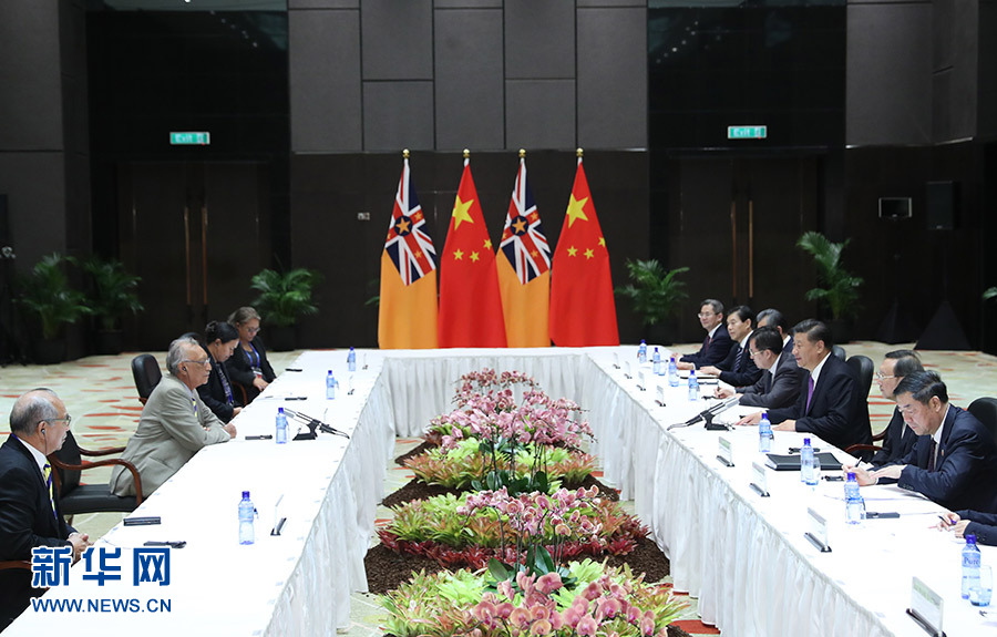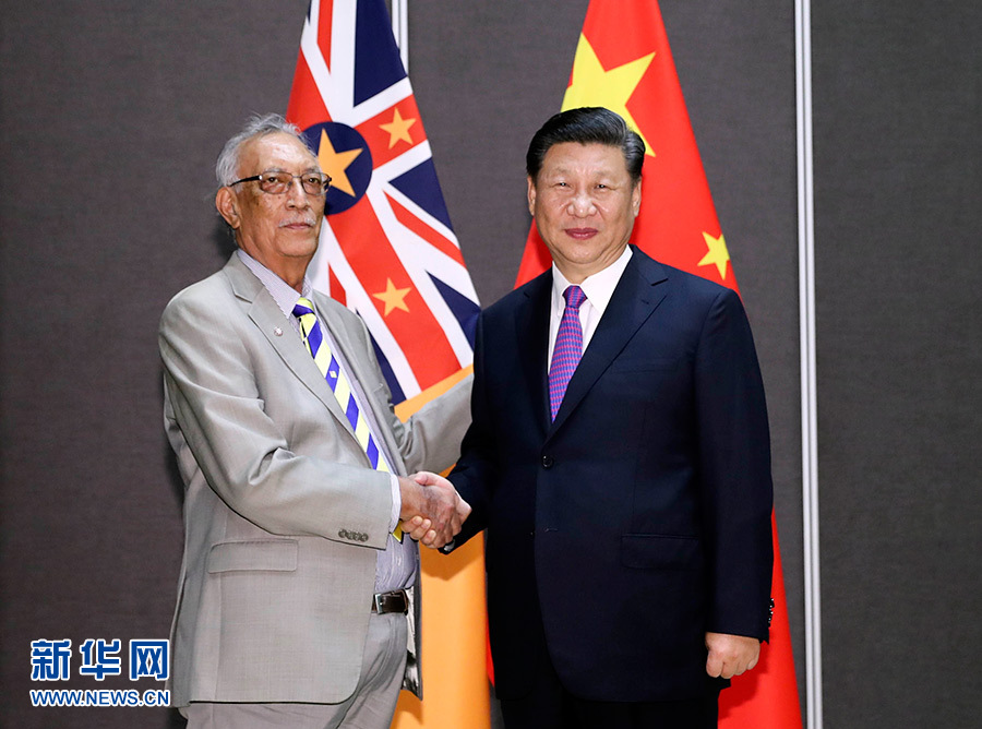 11月16日,國(guó)家主席習(xí)近平在莫爾茲比港分別會(huì)見建交太平洋島國(guó)領(lǐng)導(dǎo)人。這是習(xí)近平會(huì)見紐埃總理塔拉吉。 新華社記者 丁林 攝